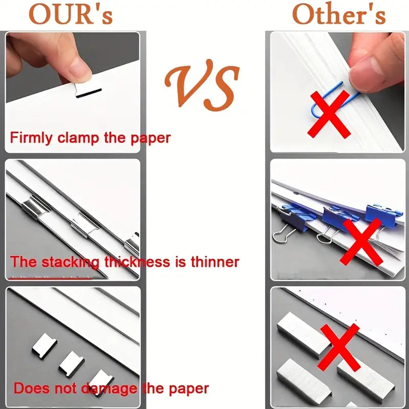 - Easy to use, remove and re-use.Clips won't damage or mark paper in the same way as paperclips or staples.