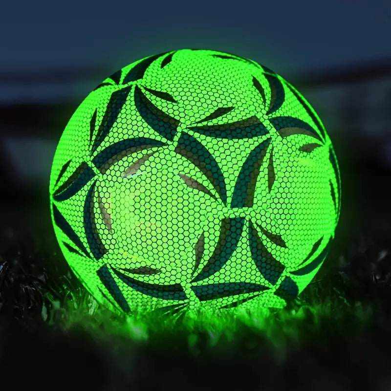 Shiny Fluorescent Green Soccer Ball Wearable PU Size 5