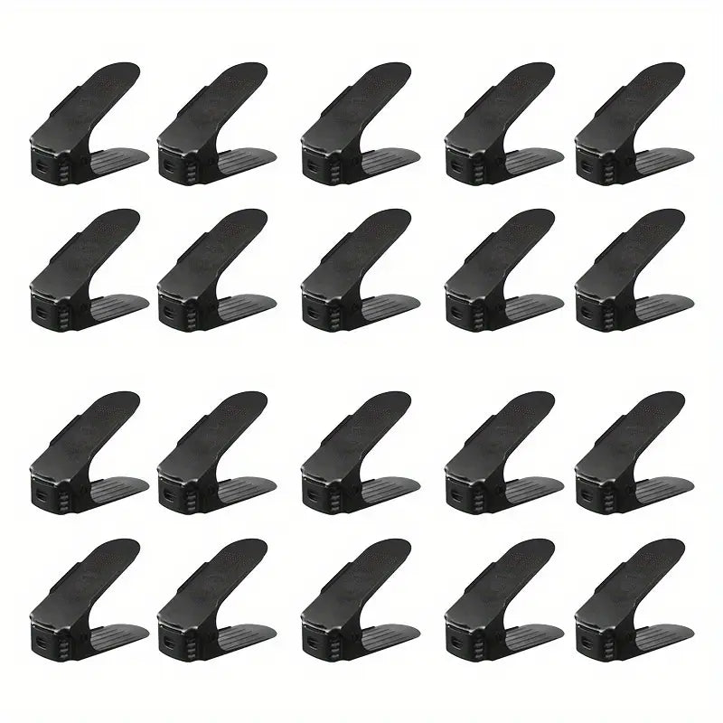 These shoe organizers are compact and sturdy. They are made of premium quality abs plastic. They fits nicely even in small spaces or shelves.