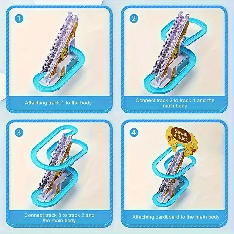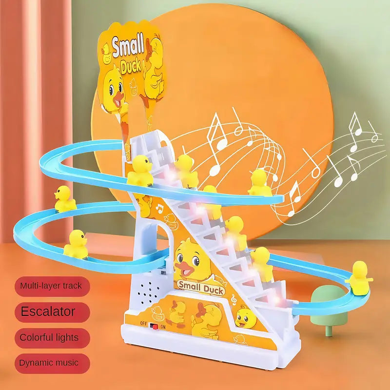 - ✅ Develop Baby's Visual Perception: This ducks climb stairs toy with musical effects can promote baby's development, fun songs and upbeat music can develop baby's visual perception. Rev up your child's curiosity and hand-eye coordination with this race track set.